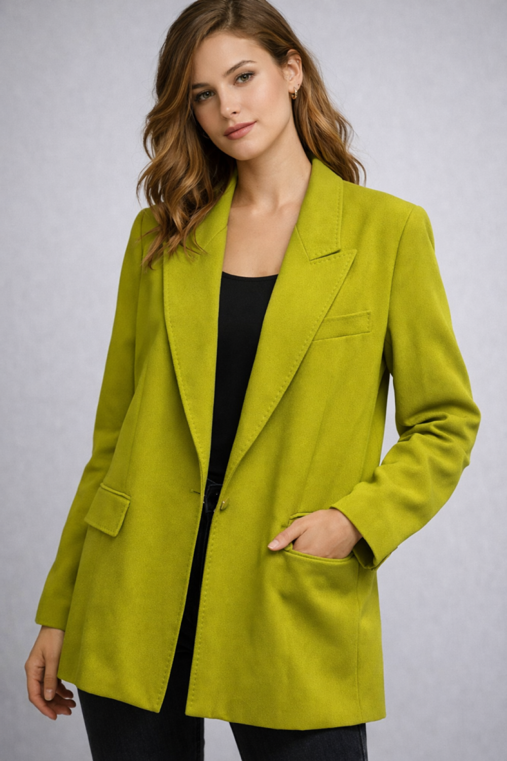 Gardırobunuza renk katacak bu şık blazer ceket ile her ortamda dikkat çekici ve modern bir stil yakalayabilirsiniz.