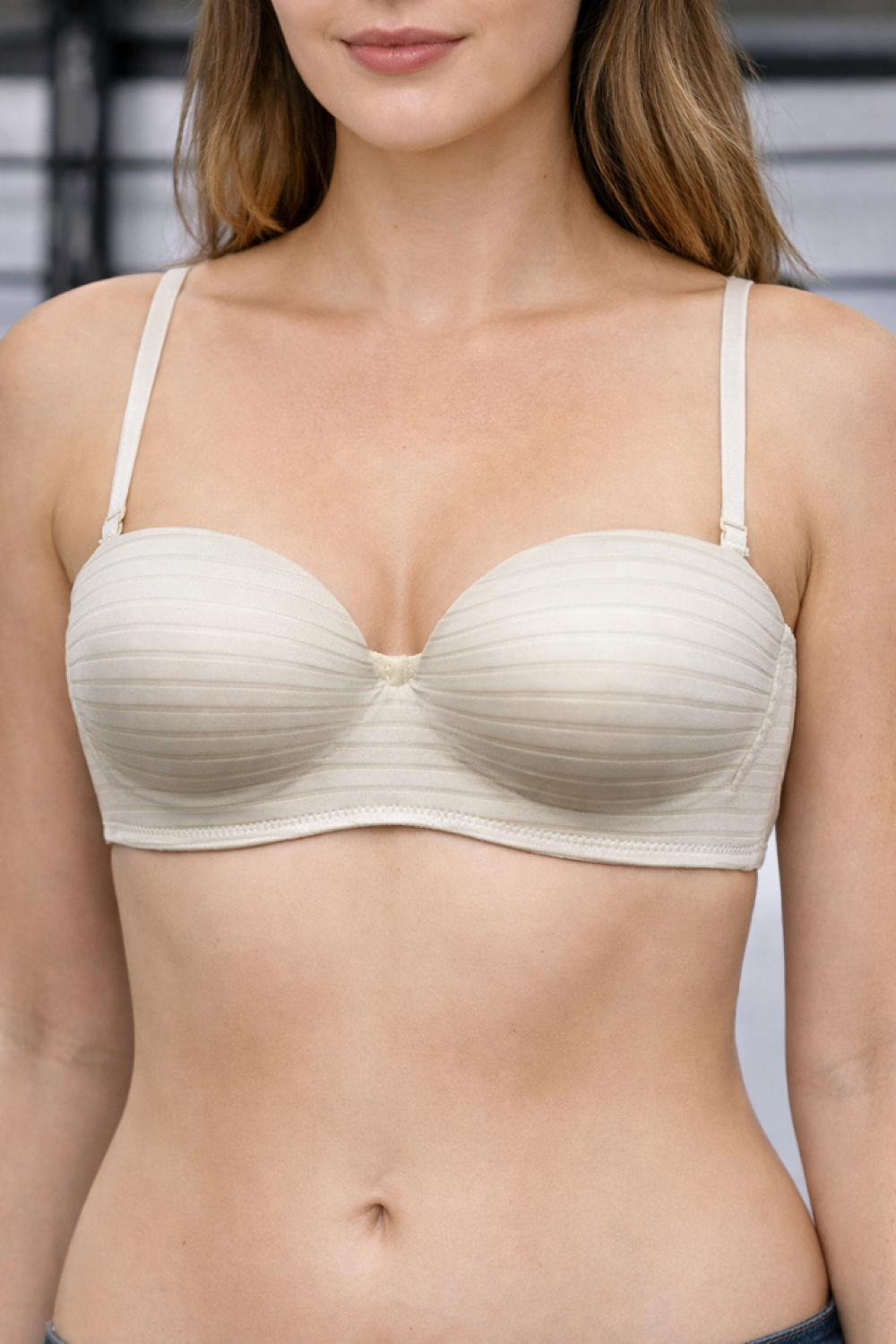 Krem Lotus Model Desteksiz Çizgili Büstiyer Sütyen