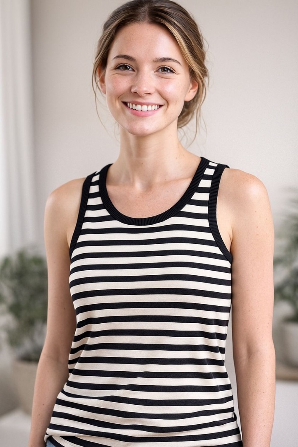 Siyah Ekru Çizgili Kadın Üst